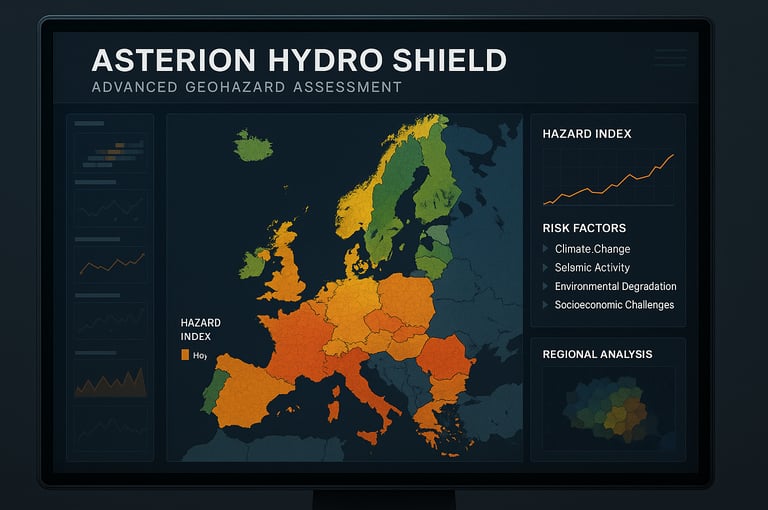 Asterion Hydro Shield (AHS) is a cutting-edge software platform for predictive analysis, developed to revolutionize the way geohazards are assessed and understood. As an advanced geohazard assessment tool, it integrates high-resolution environmental, climatic, geological, and socioeconomic data to offer a comprehensive, multi-layered understanding of hazard dynamics across diverse regions. Designed with scalability and adaptability in mind, Asterion Hydro Shield enables users—from environmental strategists and disaster risk managers to policymakers and infrastructure planners—to anticipate and prepare for complex, interlinked risks before they materialize into crises.