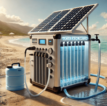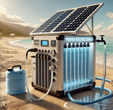 Our portable desalination unit uses an advanced Reverse Osmosis (RO) system, tailored specifically for efficient freshwater production in remote and off-grid locations. By harnessing a high-performance RO membrane, the system effectively removes up to 99% of salt and impurities from seawater, transforming it into clean, drinkable water. The unit’s process begins with pre-treatment filtration, where large particles and organic materials are removed to protect the RO membrane and extend the system's lifespan. Water is then pressurized using energy generated from integrated renewable sources solar, wind, and hydropower allowing the unit to operate sustainably, even in isolated environments. Under this pressure, water molecules are pushed through the RO membrane, which captures salts, bacteria, and other contaminants, ensuring only purified water passes through. After filtration, the water undergoes a mineral adjustment process, adding essential minerals back for optimal taste and health benefits. The system also features an eco-friendly brine disposal mechanism, designed to minimize environmental impact. With its energy-efficient, renewable-powered design, our portable RO desalination unit offers a reliable, low-maintenance solution to address water scarcity in areas without traditional infrastructure, making it both an economical and sustainable choice.